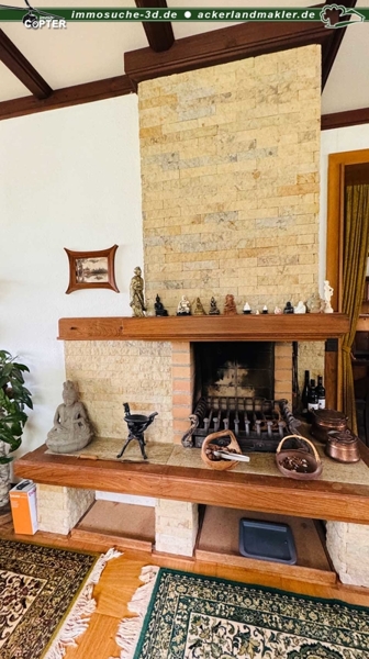 Erdgeschoss: großes Wohnzimmer (mit Diele, Essbereich, Wohnbereich) mit offenem Kamin, Küche, Eingangsflur, Bad - ca. 90 m² Nutzfläche